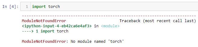 - So, as noted below, import torch is not recognised inside a newly opened jupyter notebook